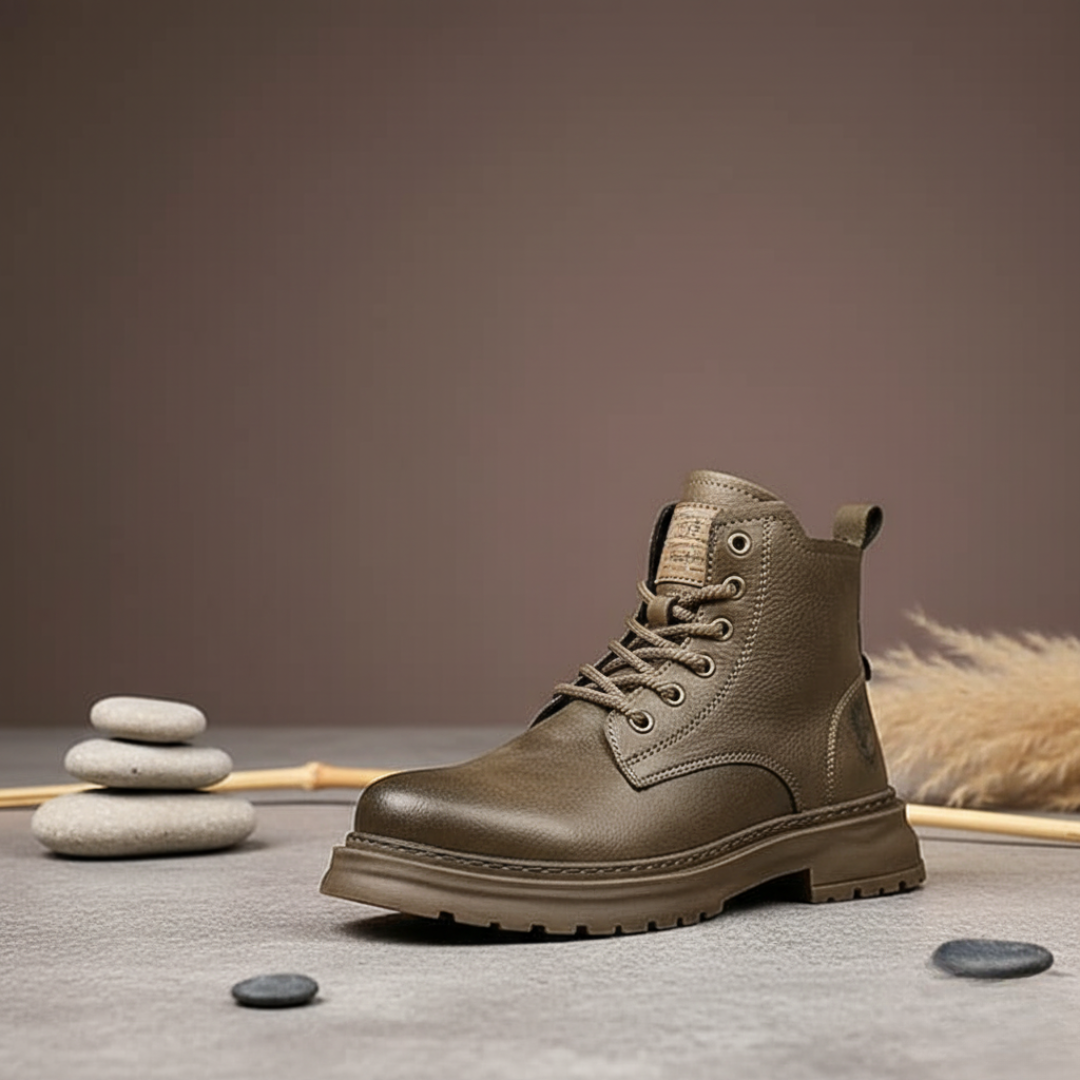 Acești bocanci combină stilul robust al încălțămintei militare cu o notă de modă urbană, fiind perfecți pentru un look casual și îndrăzneț. Carâmbul mediu oferă un suport ferm gleznei fără a restricționa mișcarea, fiind ideali pentru utilizarea zilnică și activitățile în aer liber.